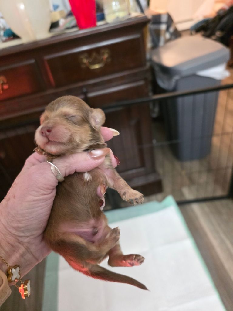 We are so excited to announce that Ziva, our chocolate and tan long haired girl, had her pups! We have 4 adorable babies! π₯°ππππ